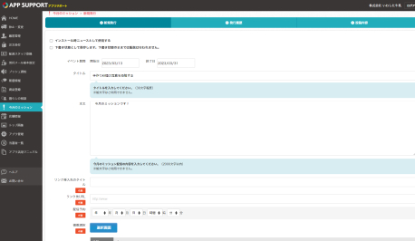 また、フリーメッセージのみのプッシュ通知や対象を特定のお客様に指定して配信することも可能です。キャンペーン告知や、時間制限のある情報発信、お得意様への個別連絡など、用途に合わせてご利用下さい。